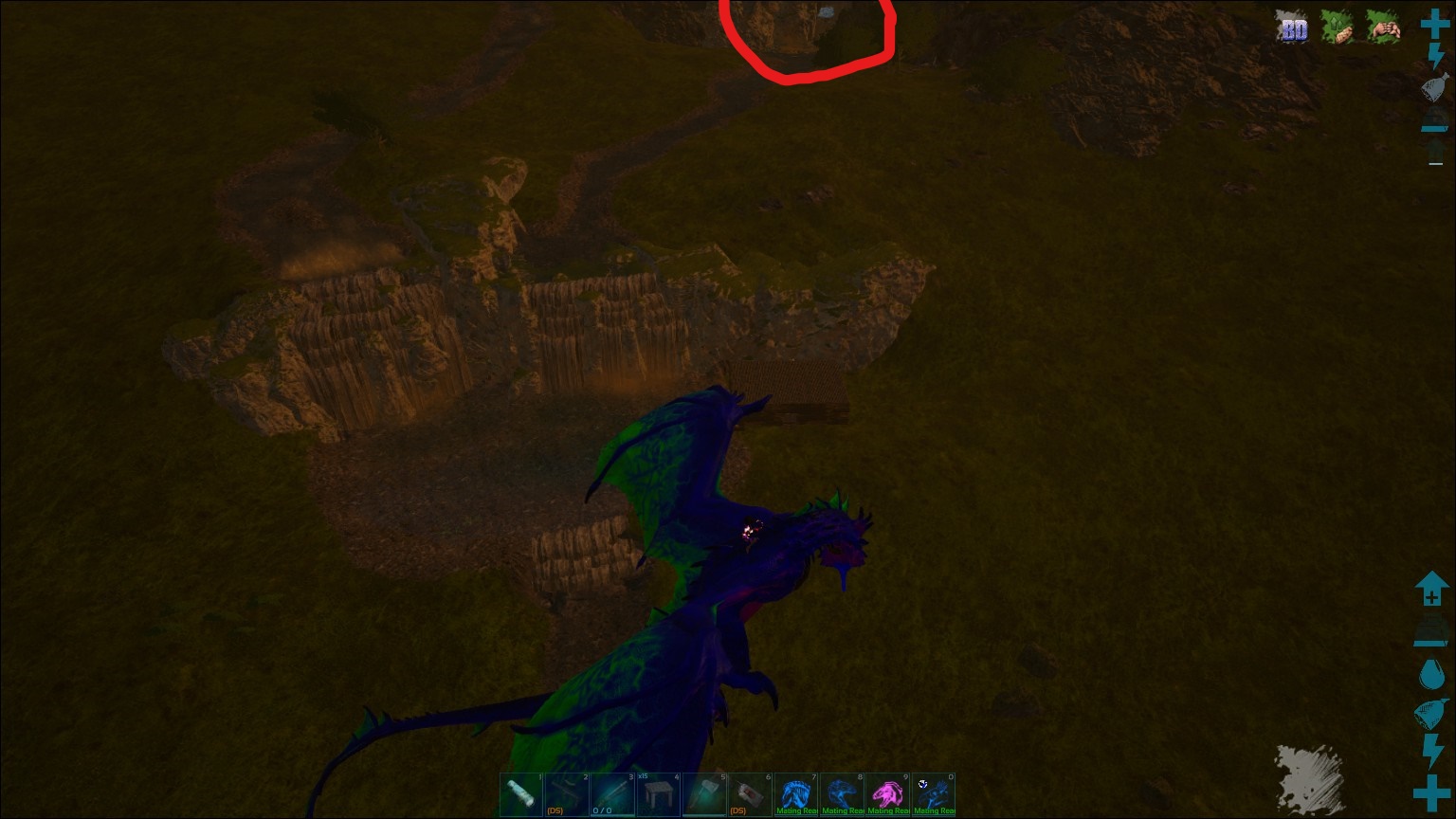 Details: Someone by the name of 'gamble' (also tribe name) built way too close below my cave base, so now i cant build reinforcements outside because apparently they are too close to enemy structures. I can see their base just from medium distance. I think they built there recently while i was just taking a break from the game. the circle on the image is my base, and the square wooden structure is their base. (and shouldn't that pond be part of my tribe as well since it's connected to the cave....?)